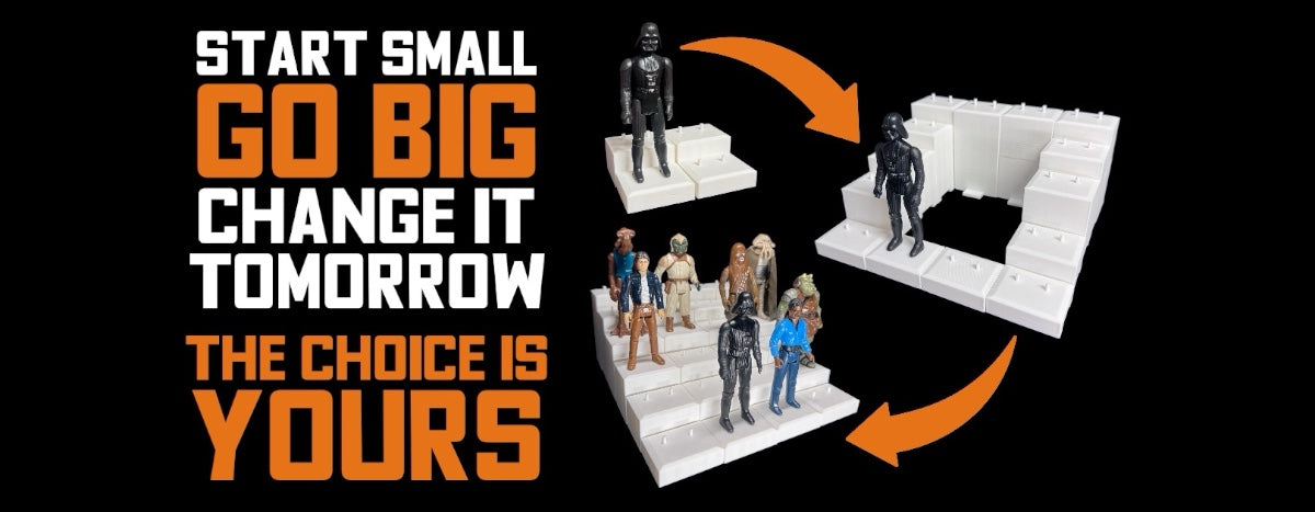 Your collection will change. Your shelves will move. FigureFloor adapts with you. A modular, sustainable system that grows, shrinks, and rebuilds forever.